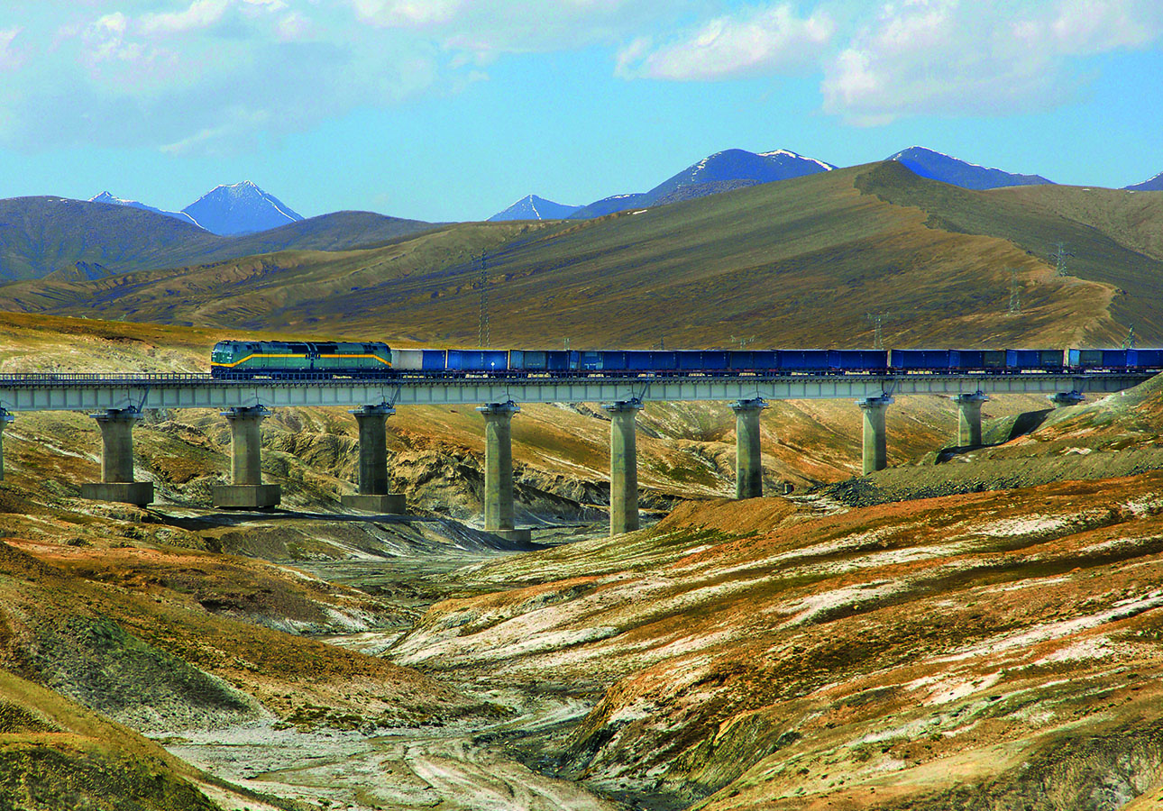 die Eisenbahnstrecke von Lhasa zur 3836 Meter
