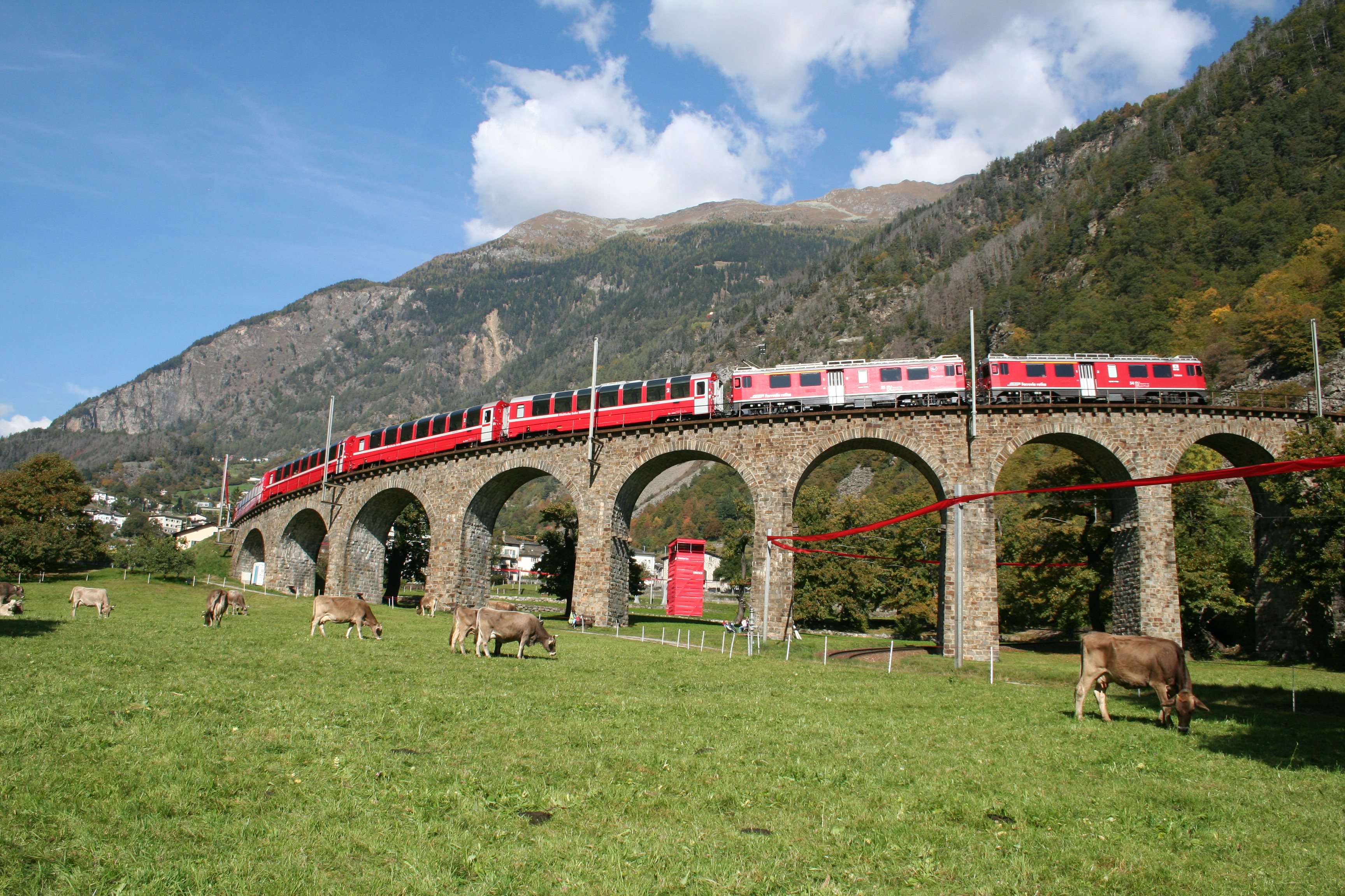 Ein erstes,spannendes Abenteuer wartet auf uns, mit der Fahrt über die zum UNESCO-Welterbe zählende, atemberaubende Albulabahn, mit Ihren Zahlreichen Kunstbauten, Viadukten, Kehrschleifen und Tunnelabschnitten. Eine unvergessliche Bahnfahrt durch die Schweizer Bergwelt steht gleich im Anschluss auf dem Programm. Im BERNINA-EXPRESS geht es über den 2.253 m hohen Berninapass mit einzigartigen Ausblicken auf den mächtigen Viertausender Piz Bernina und dann über Alp Grüm in unzähligen Serpentinen hinunter ins italienisch geprägte Val Poschiavo. Über das spektakuläre Kreisviadukt bei Brusio führt die legendäre Bernina-Bahn schließlich ins italienische Tirano. Dort haben Sie Aufenthalt für eine Mittagspause oder für einen Bummel durch das historische Zentrum. Am Nachmittag Rückfahrt mit dem Zug nach Chur. Übernachtung in Chur.