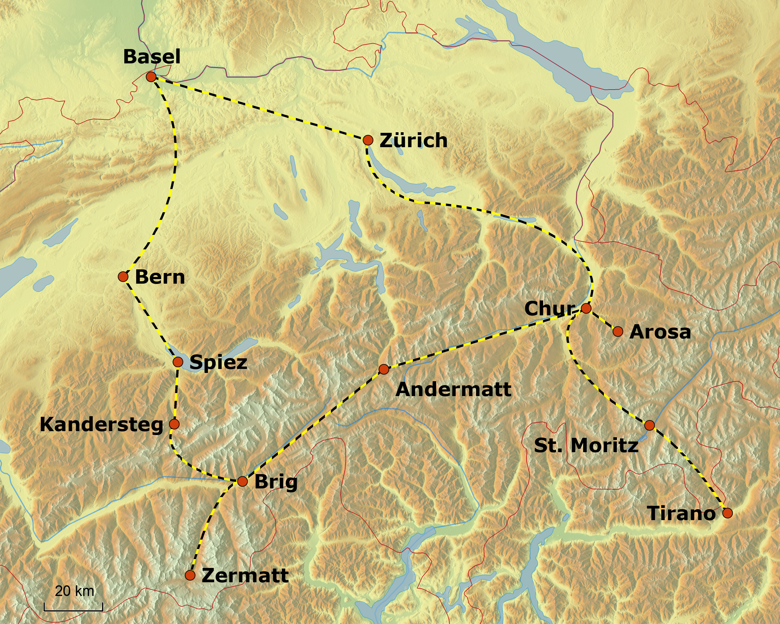 - Alle im Reiseverlauf genannten Zugfahrten ab/bis Basel SBB (so weit möglich) auf