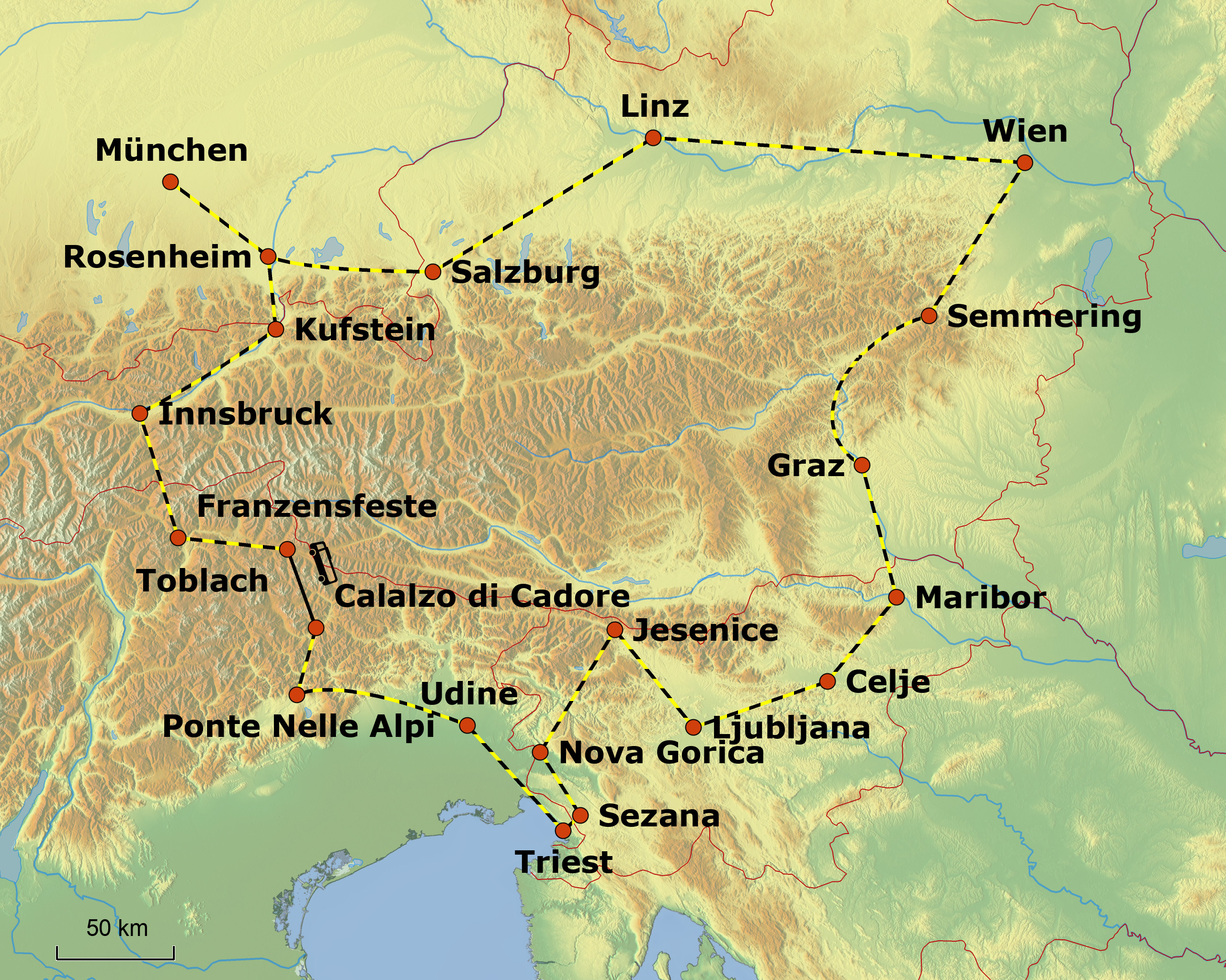 nach Triest an der Adria führt.