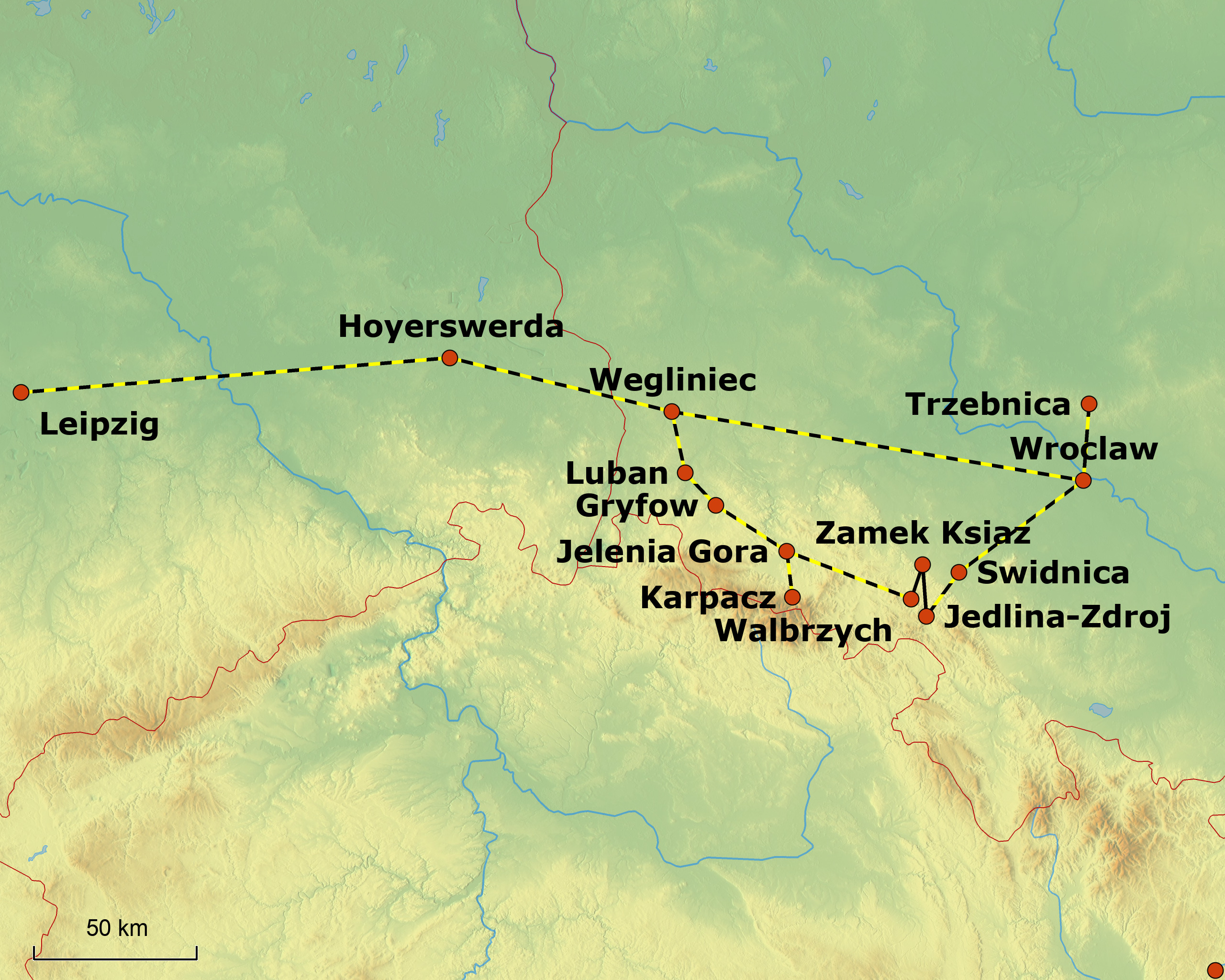 Fahren Sie mit der IGE bequem und ohne Gepäck, an geschichtsträchtige Orte Polens: Breslau, Trebnitz, Schweidnitz, Bad Charlottenbrunn, Kreisau um nur einige zu nennen.